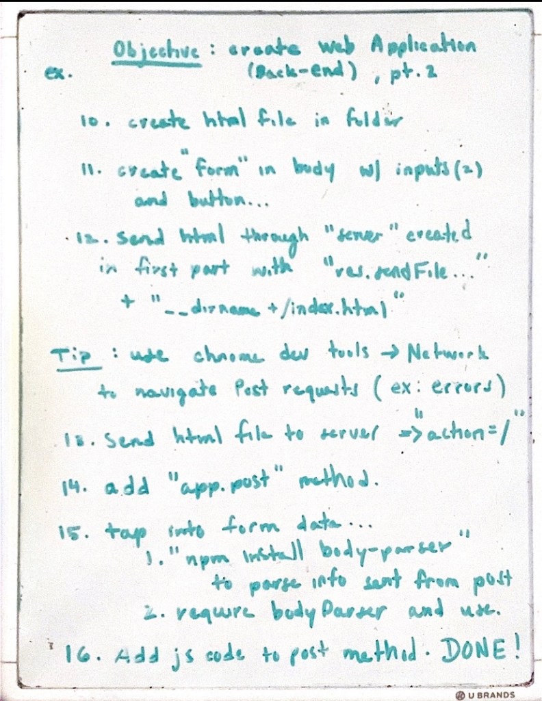 In the second part of this project, I was able to inject my HTML file so that my server would be able to send this to the web browser. And inside the HTML file, I created a form for the user to use as a calculator. Once this is done, I was able to handle the “post” request using the “res.send” function. Finally, in order to tap into the data provided by the user I simply installed “bodyParser,” required it, and used it so that I was then able to create the actual calculator code in the post method. In order to run this code, I simply went to my web browser and ran “localhost:3000” while the server runs which is the port I used for this project.